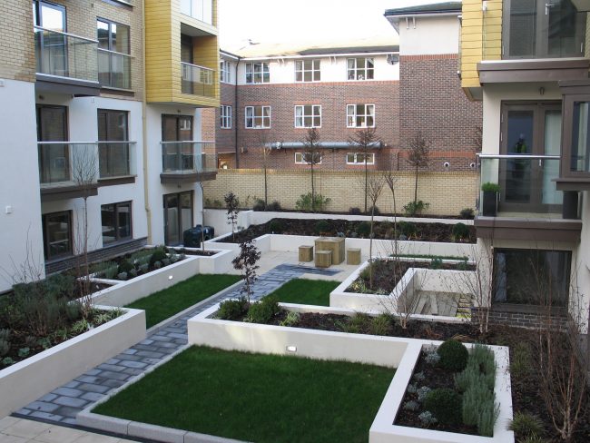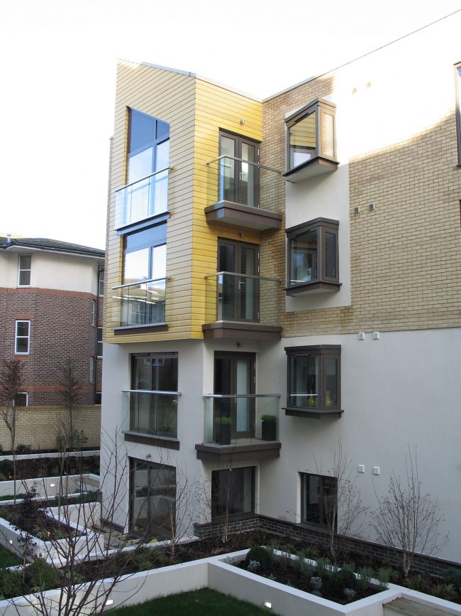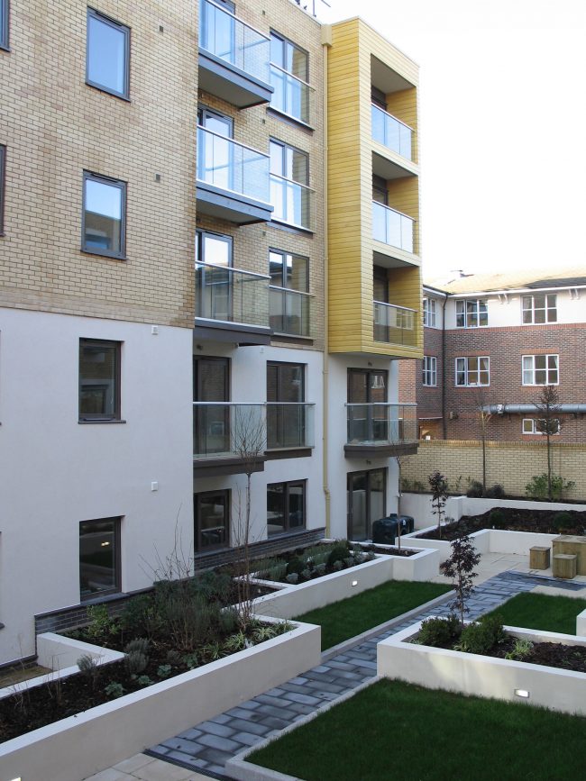 This is a mixed use development of residential and commercial properties on a brown field site previously occupied by an industrial laundry. The residential element consists of 91 apartments spread over six blocks of four and six storeys with underground car parking whilst the commercial element consists of three blocks each of three storeys. Construction is generally in-situ reinforced concrete flat slabs supported by RC columns with building stability provided by concrete shear walls located around lift cores and staircases and at other discreet positions. The foundations comprise in-situ reinforced concrete raft type foundations taken down into the underlying London clays. Being a brownfield site, this project was therefore subjected to an extensive intrusive contamination survey and monitoring.