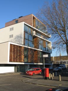The site backs onto Wenlock Basin, part of the Regents Canal in North London and the soil investigation indicated the site to be seriously contaminated. The construction comprised insitu reinforced concrete flat slabs supported on columns and shear walls. These shear walls provide building stability. Due to the very high water table and that the basement is constructed on the site boundary, the basement was formed by the use of a driven steel sheet piled wall with an RC facing wall behind. Concrete internal columns/walls are supported on a piled raft foundation.