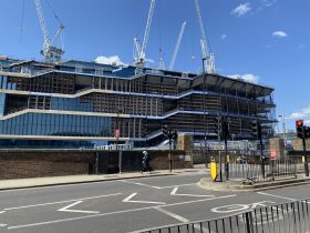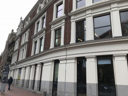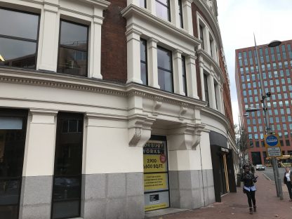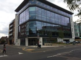 The refurbishment of an existing six storey office block included significant structural remodelling of the ground floor entrance and reception by adding new floor and stair arrangement to suit the difference in level between ground floor and street. A new composite concrete floor was added in this area supported on new steelwork.